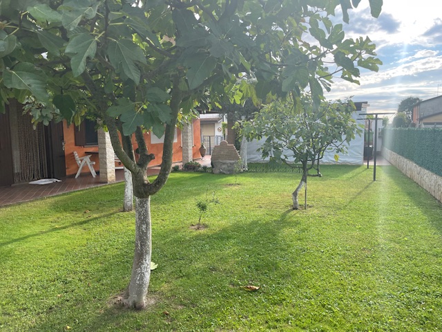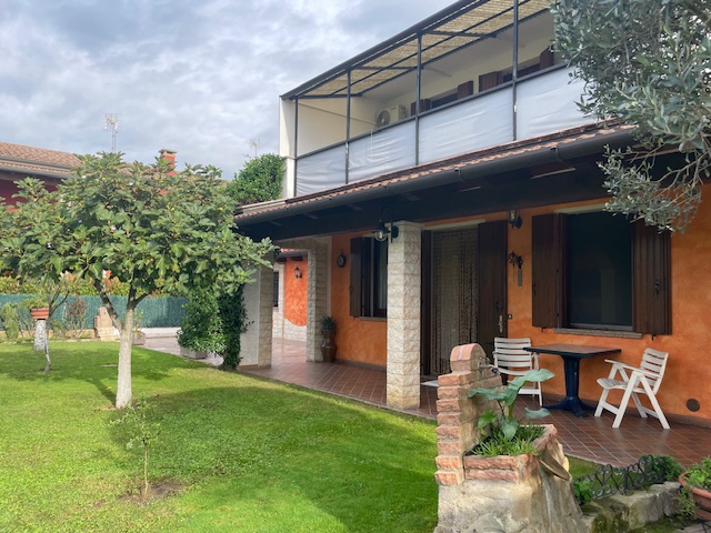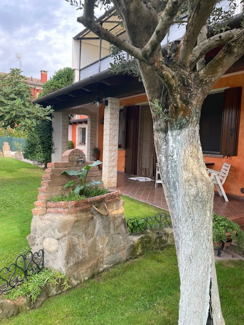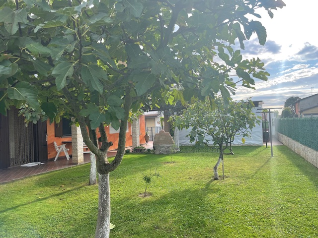 L'abitazione gode di un giardino piantumato e ben curato di circa 500 mq., dove troviamo un comodo pergolato per due posti auto.